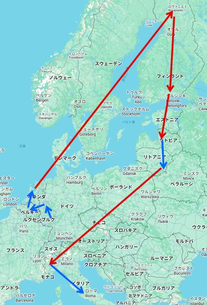 ブリュッセルから高速鉄道でアムステルダムを経由してフィンランドのロヴァニエミという街に着きました。