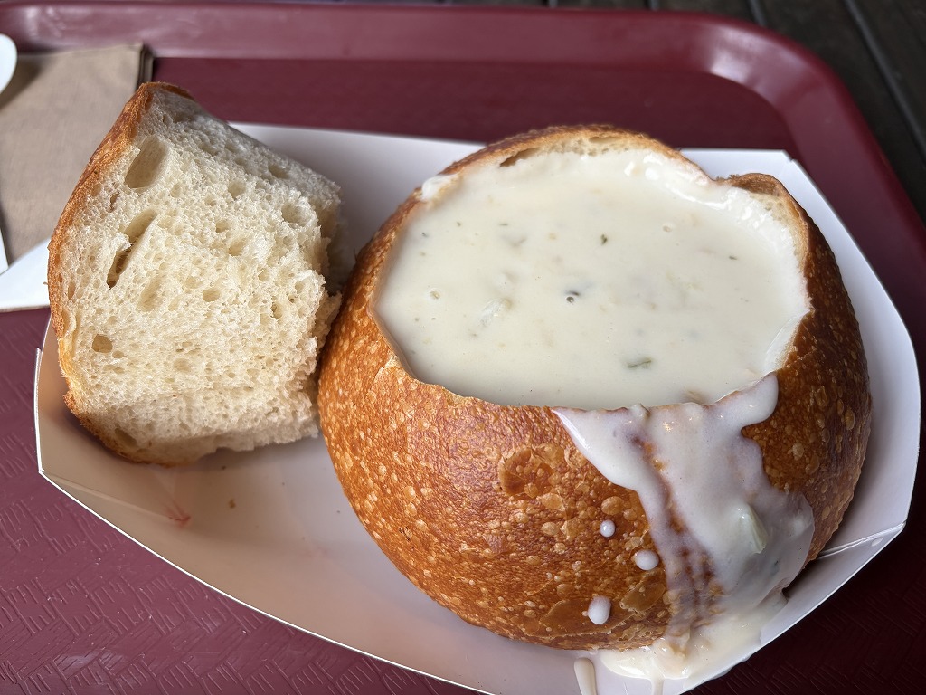 クラムチャウダーが有名との事で人気の店で食べてみましたが特に日本で食べるのと変わらないかなって感じでした。