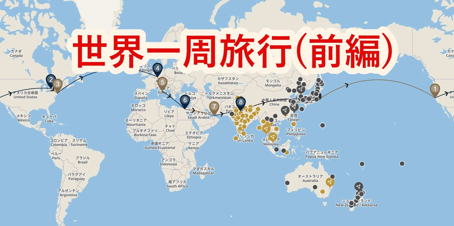現在世界一周旅行をしており、旅の備忘録として前編・後編の2回に分けて旅の概要について記載しておこうと思います。